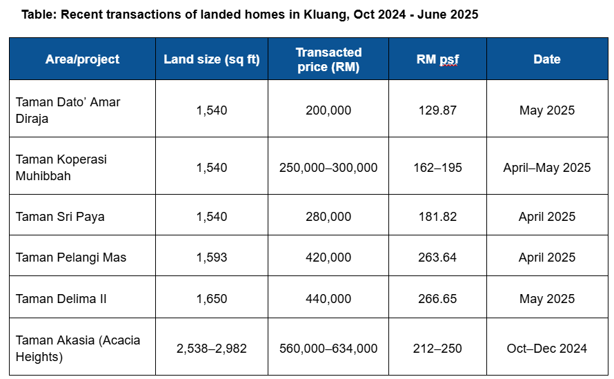 These figures highlight how the sub-RM300,000 terrace segment continues to serve as an important entry point for young buyers and families, even as higher-end enclaves begin to reshape Kluang’s landed housing landscape.