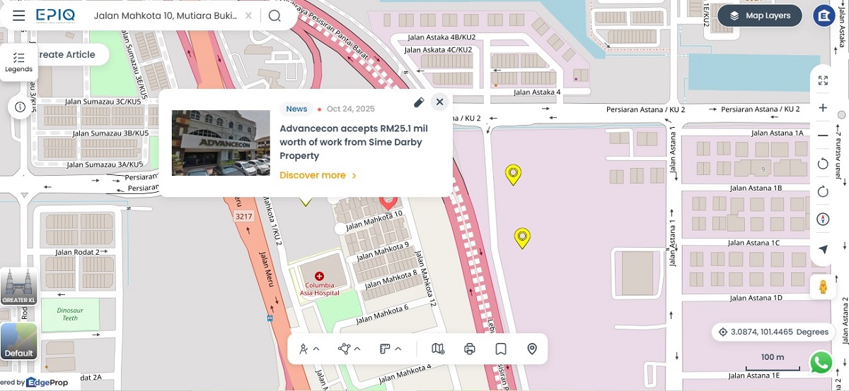 “We are honoured to be entrusted once again by Sime Darby Property, one of Malaysia’s leading township developers. Our continued collaboration across projects such as Bandar Bukit Raja and Serenia City reflects our shared commitment to delivering sustainable infrastructure and quality urban development. This latest win further consolidates our foothold in Selangor, where we continue to play a key role in supporting Malaysia’s property and infrastructure ecosystem,” said Datuk Phum Ang Kia, Group CEO of Advancecon Holdings.