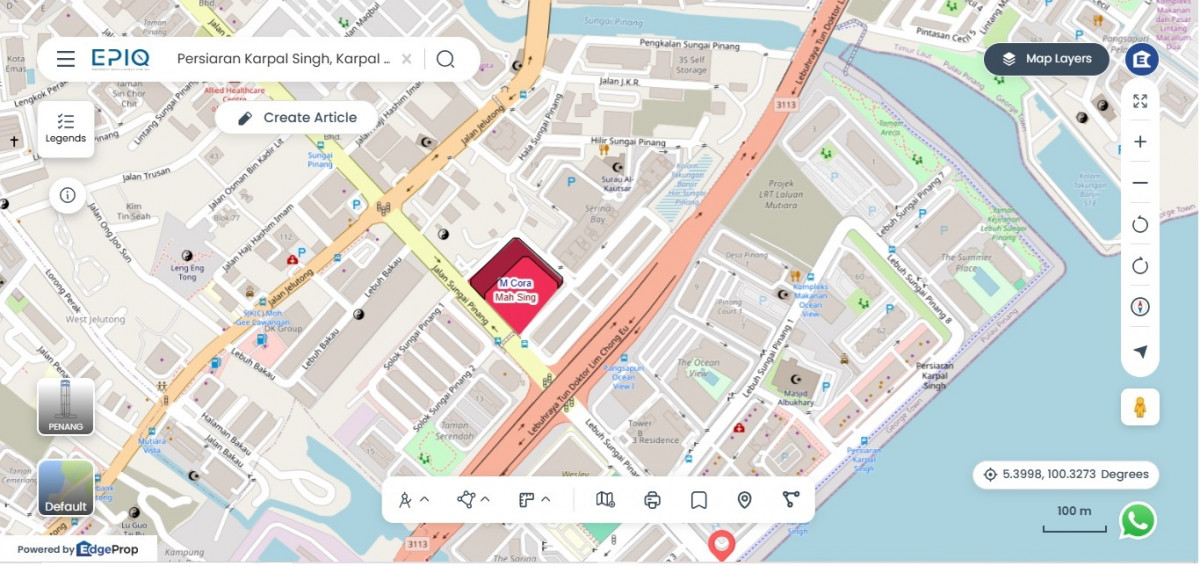 The site fronts the Tun Dr Lim Chong Eu Expressway and is surrounded by established residential and commercial areas.