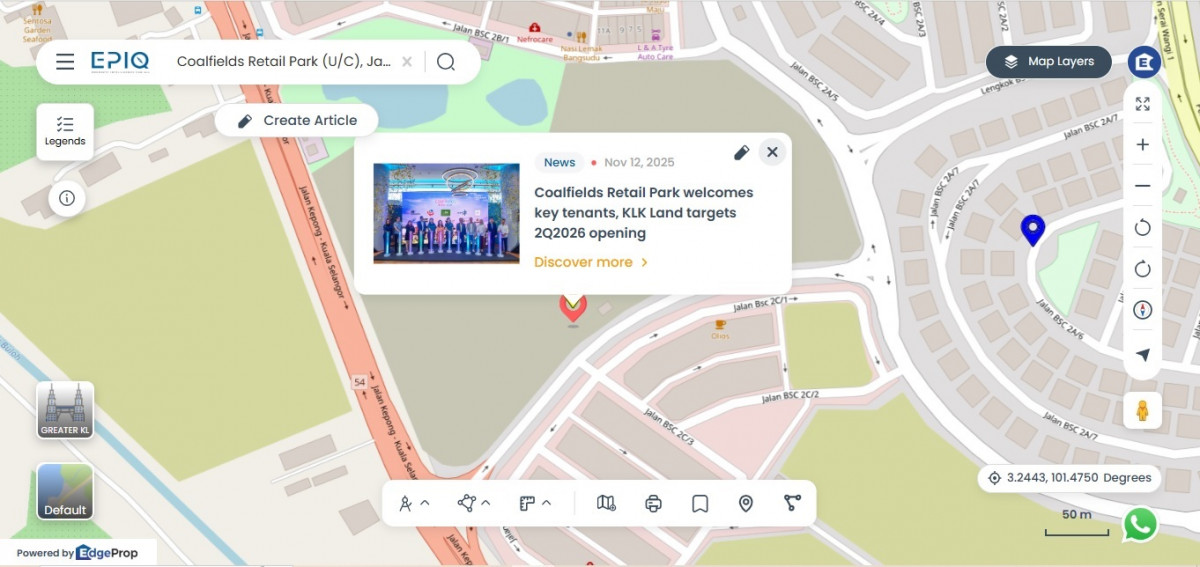 PETALING JAYA (Nov 12): KLK Land today announced that it has secured key tenants for its upcoming Coalfields Retail Park at Bandar Seri Coalfields (BSC) in Sungai Buloh, reaffirming the project’s progress towards its targeted opening by end-2Q2026.