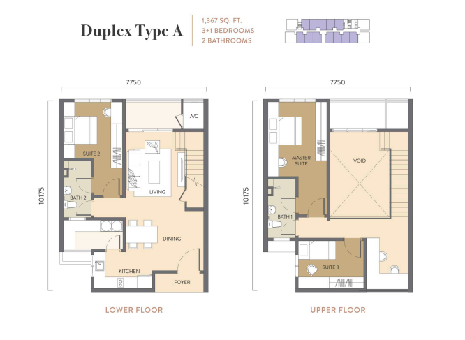 - Duplex Type A: 1,367 sq. ft. | 3+1 Bedrooms | 2 Bathrooms