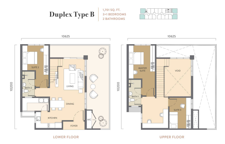 - Duplex Type B: 701 sq. ft. | 3+1 Bedrooms | 2 Bathrooms
