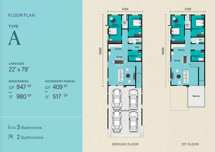 - Type A (22' × 79'): RM409,500 – RM431,100