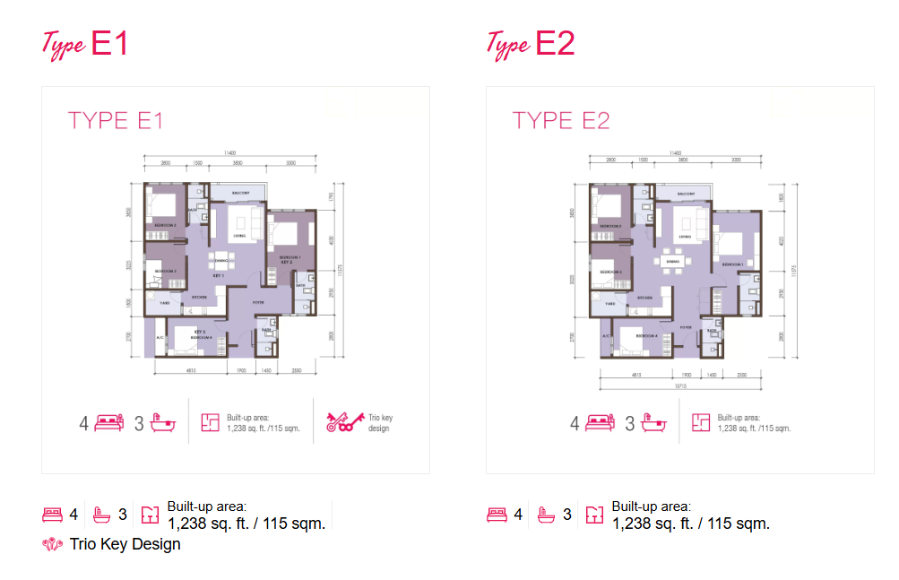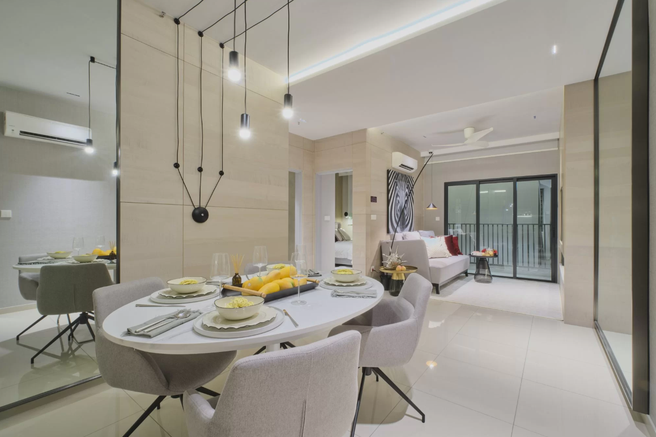 Ambang Residence’s residential component features 2- to 4-bedroom homes with built-up sizes ranging from 700 to 1,238 sq. ft., offered in practical configurations including Dual Key and Trio Key layouts for owners seeking multi-use flexibility or rental income potential.