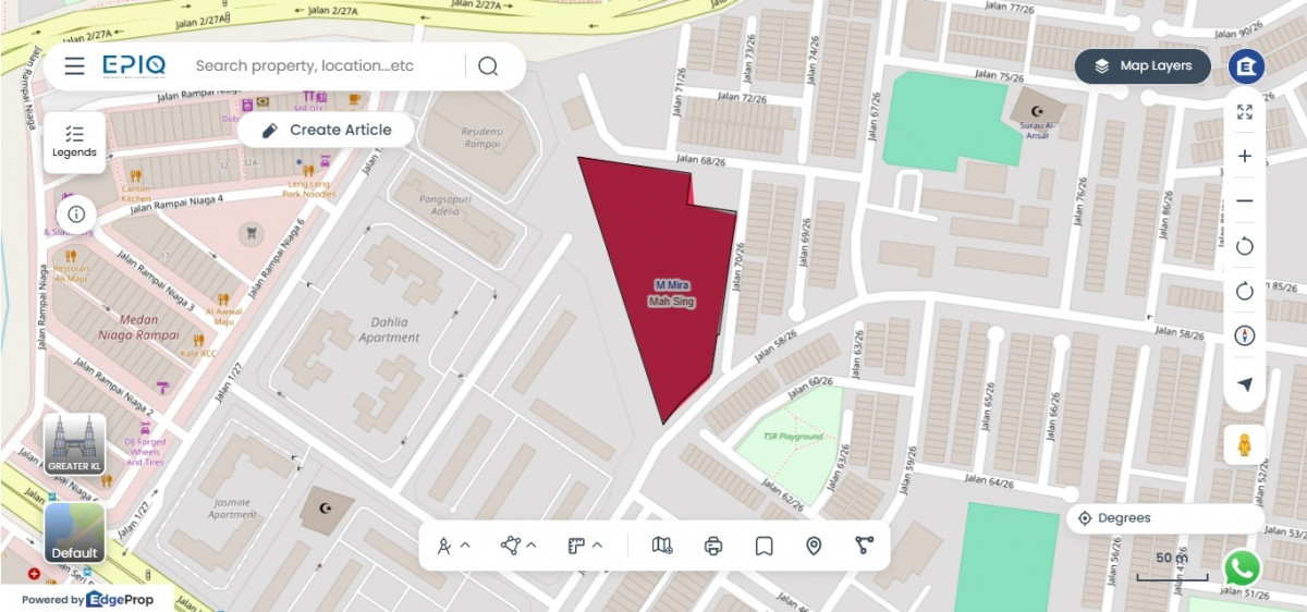 KUALA LUMPUR (Nov 21): Mah Sing Group Bhd has acquired a 2.79-acre plot in Sri Rampai, Setapak for RM44,500,000.
