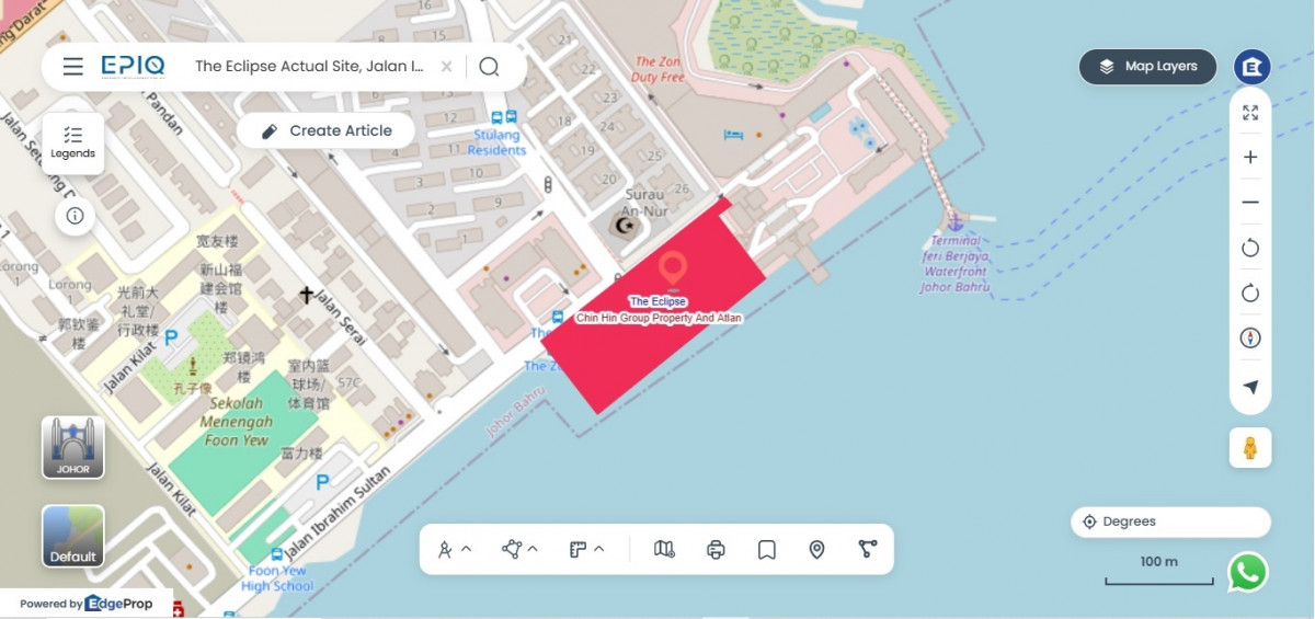 Located in Stulang, The Eclipse has direct access to major routes, offering connectivity for residents and cross-border commuters. The development sits approximately 2.8 km from the CIQ and is within minutes of the upcoming Bukit Chagar RTS Station, which will link Johor Bahru to Woodlands North in Singapore with an estimated travel time of 15 to 30 minutes.