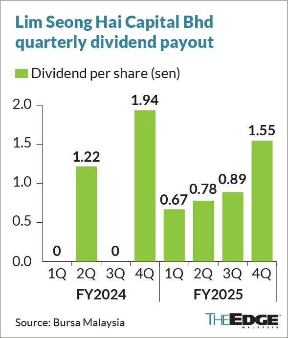 KUALA LUMPUR (Nov 25): Lim Seong Hai Capital Bhd (KL:LSH) has declared a fourth interim dividend of 1.55 sen per share, bringing the total dividend payout for the financial year ended Sept 30, 2025 (FY2025) to a record 3.89 sen.