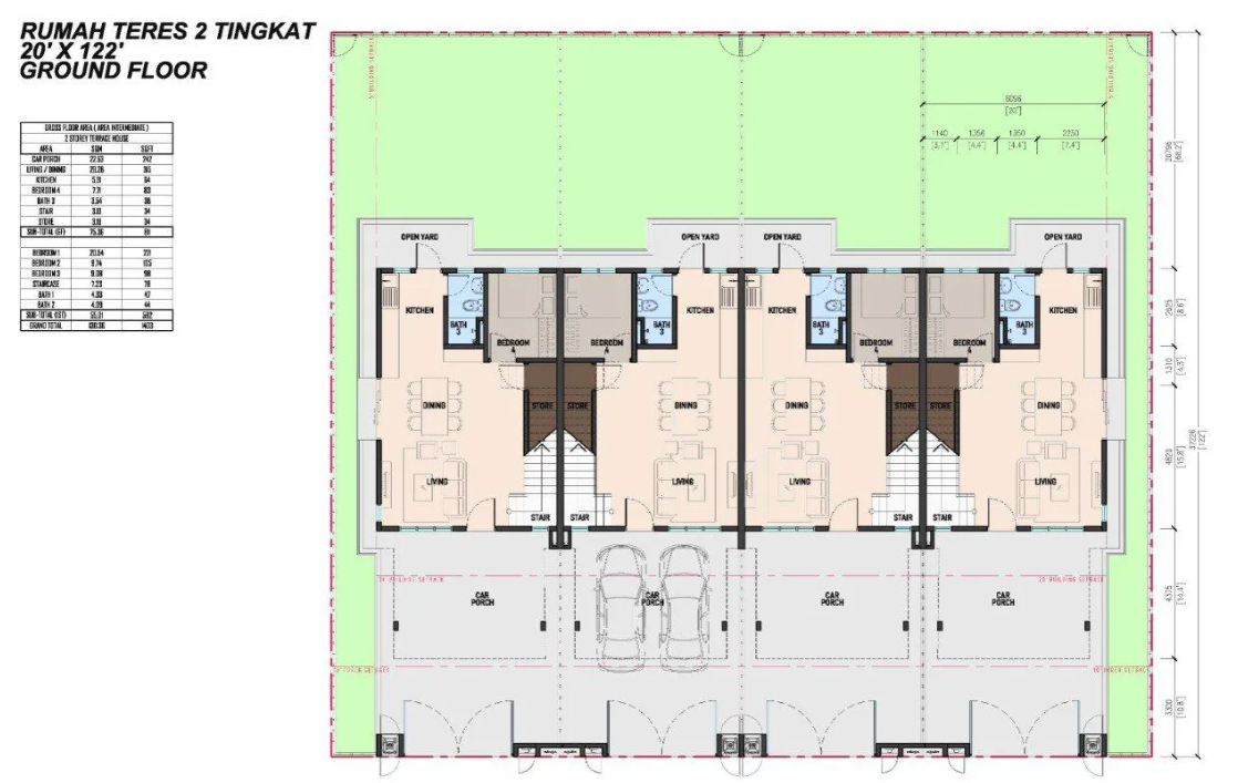 Laman Cherakah distinguishes itself through its exclusivity only 21 units in total—paired with functional 4-bedroom layouts across both single- and double-storey options. Its price points beginning from RM409,580 for 1-storey homes and RM487,380 for 2-storey units place the project attractively within the Shah Alam–Setia Alam peripheral market, where demand remains steady among young families seeking landed, affordable options.