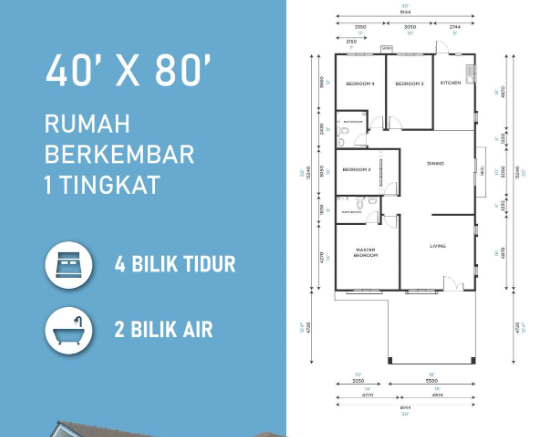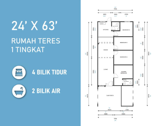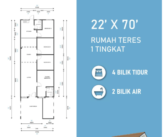Taman Rambai Bahagia offers three thoughtfully designed unit types, each featuring 4 bedrooms and 2 bathrooms, ideal for families seeking generous single-level living:
