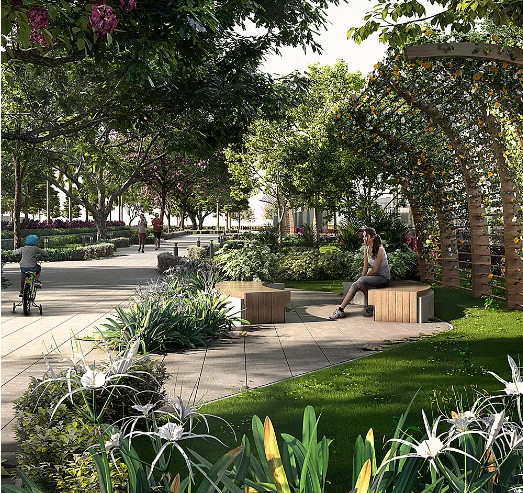 Extensive green corridors and central park spaces