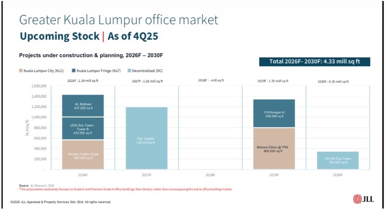The building in question is The Capitol at Bandar Utama, Petaling Jaya, set for delivery in 2027, while no additional Grade A supply is projected for 2028, said JLL Malaysia head of office leasing advisory Quiny Lee during its 4Q2025 property market briefing here on Tuesday.