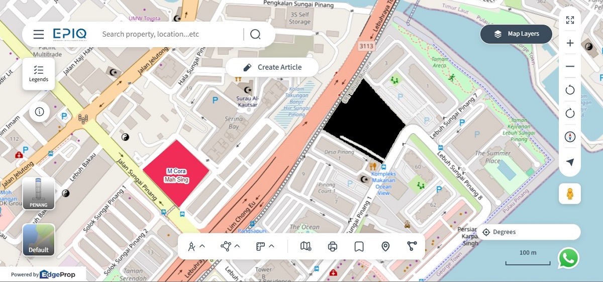The project will be built on a 2.83-acre parcel near Karpal Singh Drive, land that Mah Sing acquired from the Penang Development Corp (PDC) for RM51.8 million in late 2025, according to company disclosures.