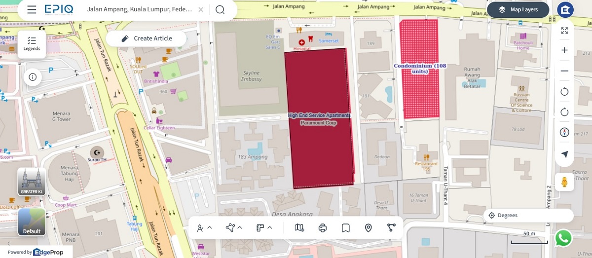 KUALA LUMPUR (March 18): Paramount Corp Bhd (KL:PARAMON) is acquiring a 3.7-acre freehold commercial land parcel along Jalan Ampang from IOI Properties Group Bhd (KL:IOIPG) for RM257.9 million, which it plans to develop into two blocks of high-end serviced apartments with an estimated gross development value (GDV) of RM1.1 billion.