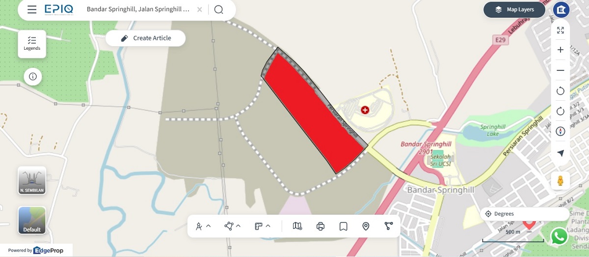 The disposed land forms part of the Bandar Springhill township in Port Dickson, a mixed-development area positioned within Negeri Sembilan’s coastal growth corridor.