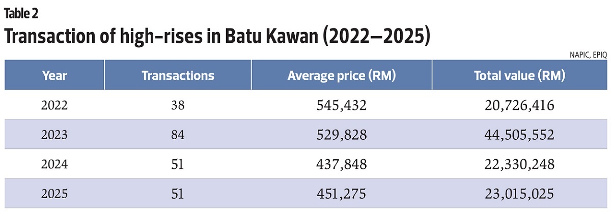 Taken together, recent transaction patterns suggest Batu Kawan is entering a new phase of growth. Activity has picked up over the past two years, with high-rise segments accounting for a larger share of deals, pointing to increasing density and a deepening catchment.