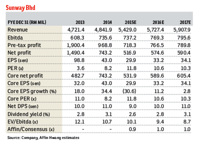 Management also shared that Sunway Putra Place is on track for completion by the fourth quarter ending June 30 (4QFY15).